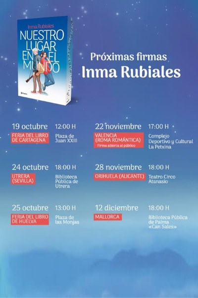 Inma Rubiales (Almendralejo, 2002) descubrió muy pronto que escribir era su manera favorita de entender el mundo. En 2019, con tan solo diecisiete años, su primera novela dio el salto al papel tras su éxito en la plataforma Wattpad.